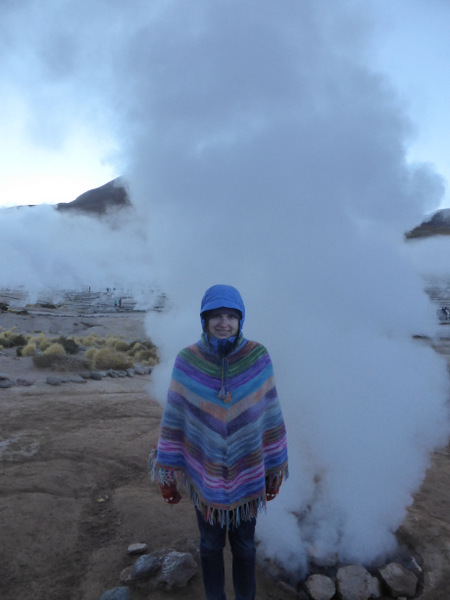 After watching the sunset over the desert, we woke up early to watch the sunrise at the El Tatio geyser field, the highest geyser field in the world at 4320m above sea level. Due to the altitude it was freezing in the morning!