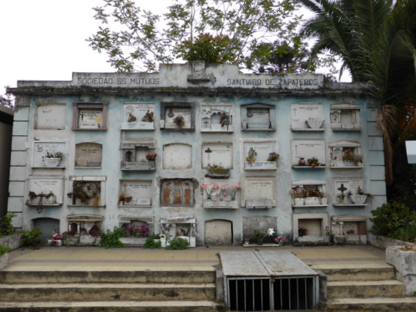 The tour also took in the cemetery, which has places for coffins in an apartment block system.