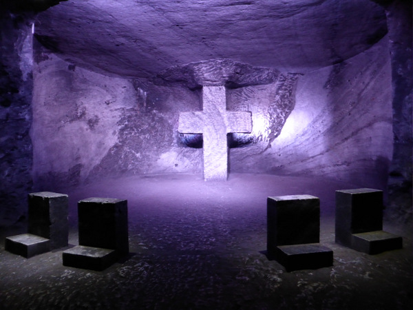 We headed straight out to to visit the Cathedral of Salt, built within the tunnels of a salt mine, 200 meters underground in a Halite mountain near the town of Zipaquirá. We took a steam train there. Well it was meant to be a steam train but, unfortunately was a diesel.