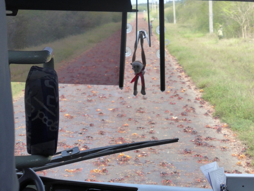 Next stop Cienfuegos. Becks couldn’t say the name. Very nice town after a nice short 1.5 hour bus ride from Trinidad. There were a few crabs on the road though. Bus driver didn’t seem to notice.