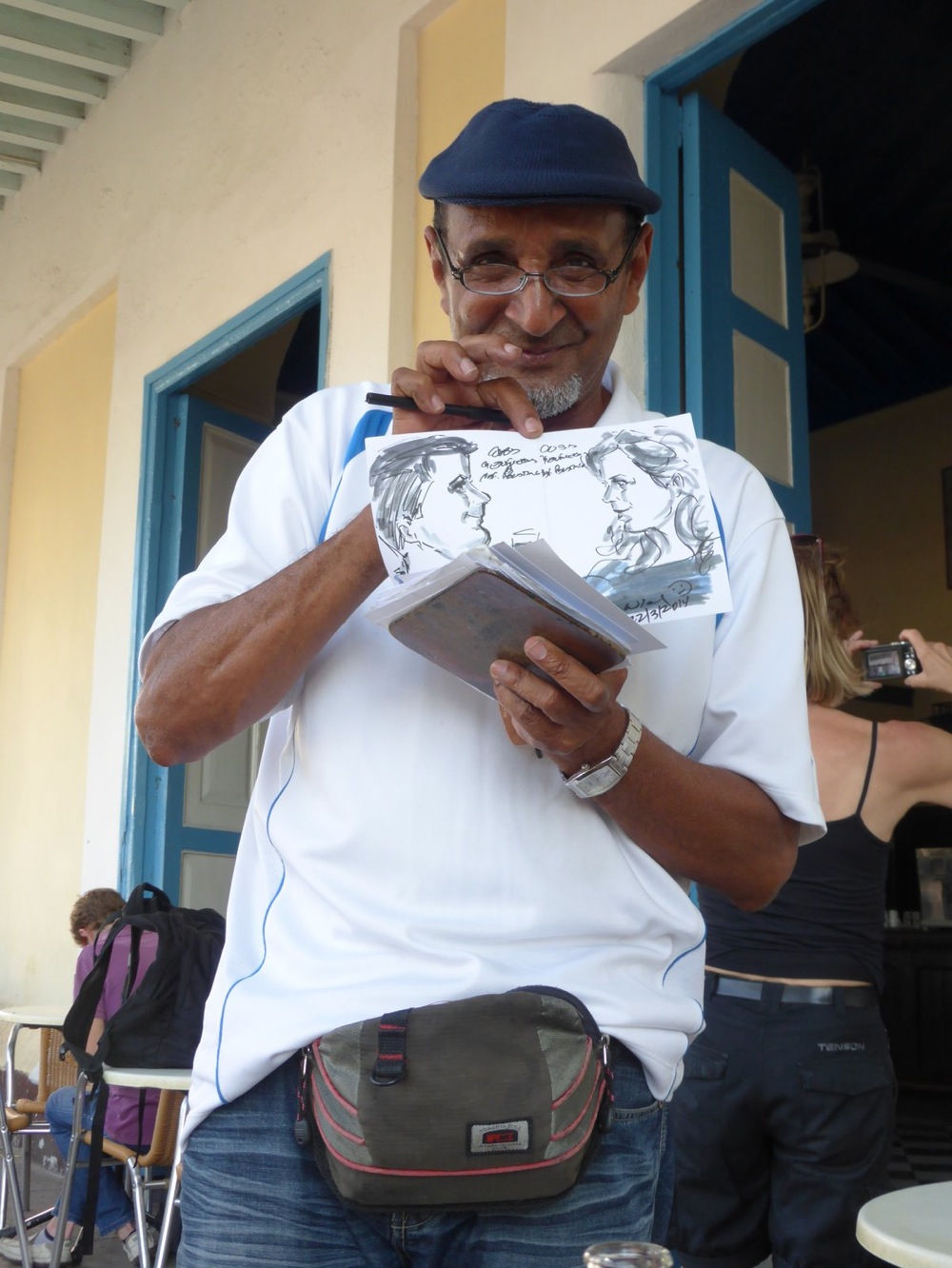 This guy drew a picture of us when we were having a beer in a bar. Or I think its meant to be us?